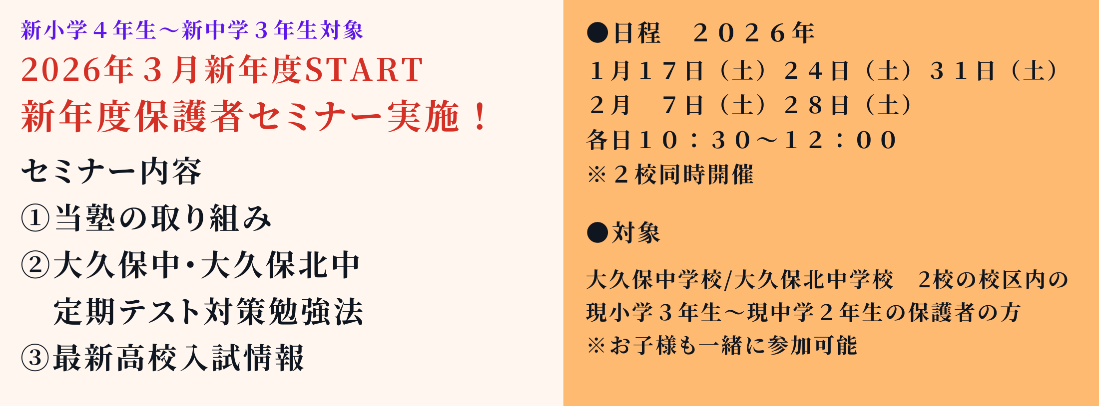 当塾は、大久保中 / 大久保南小 / 谷八木小 / 大久保北中 / 山手小 / 大久保小 に準拠した指導をします。学校の進捗に合わせてカリキュラムを組み、学校のテスト対策を毎回の授業で行い、万全の状態でテストに臨めるようにします。